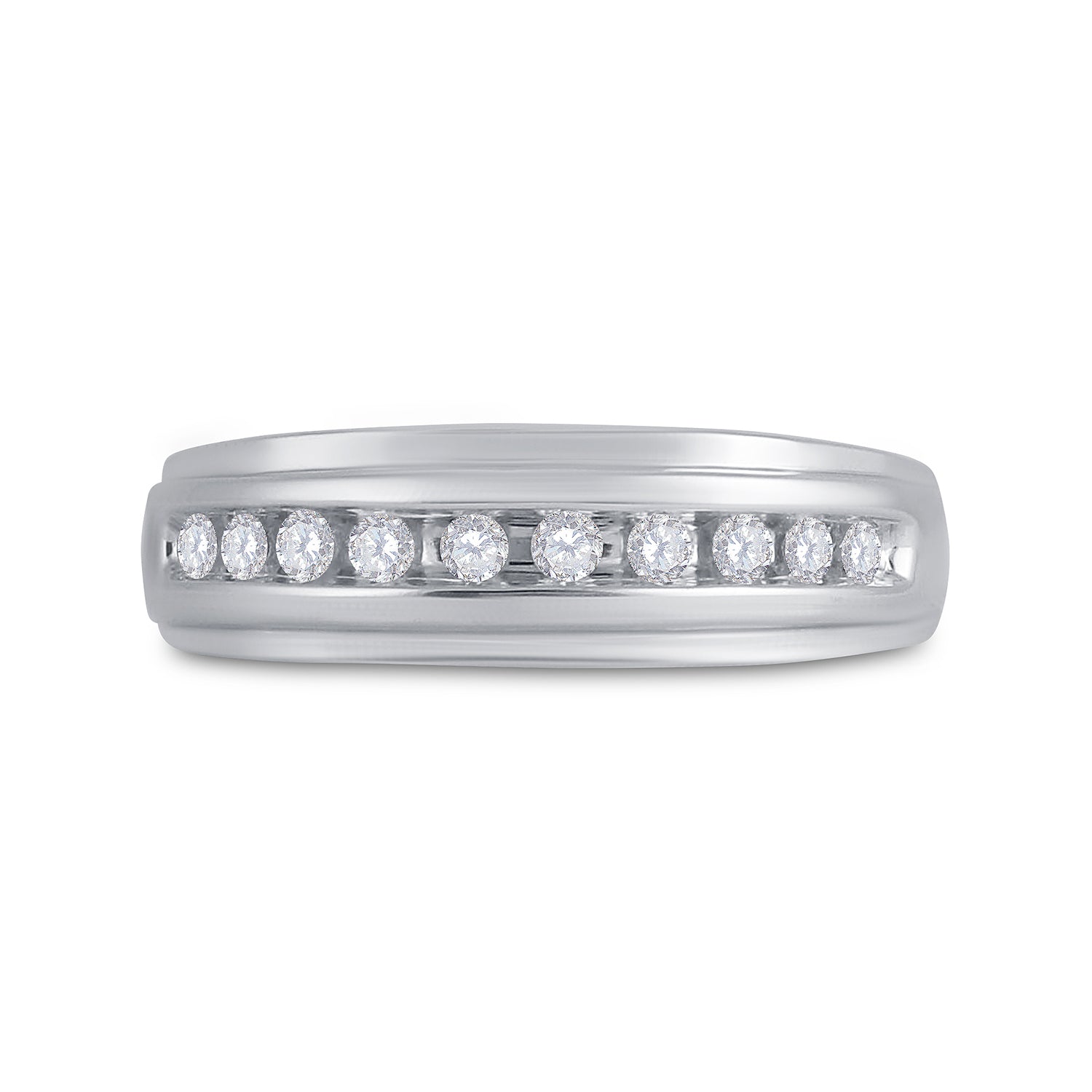 14kt White Gold Mens Round Diamond Single Row Grooved Wedding Band Ring 1/4 Cttw
