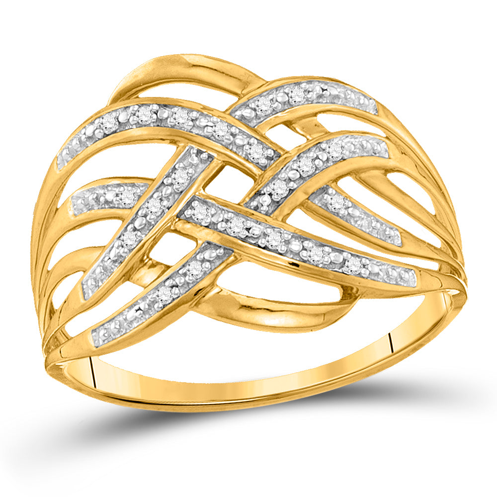 10kt Yellow Gold Womens Round Diamond Woven Fashion Band Ring 1/20 Cttw