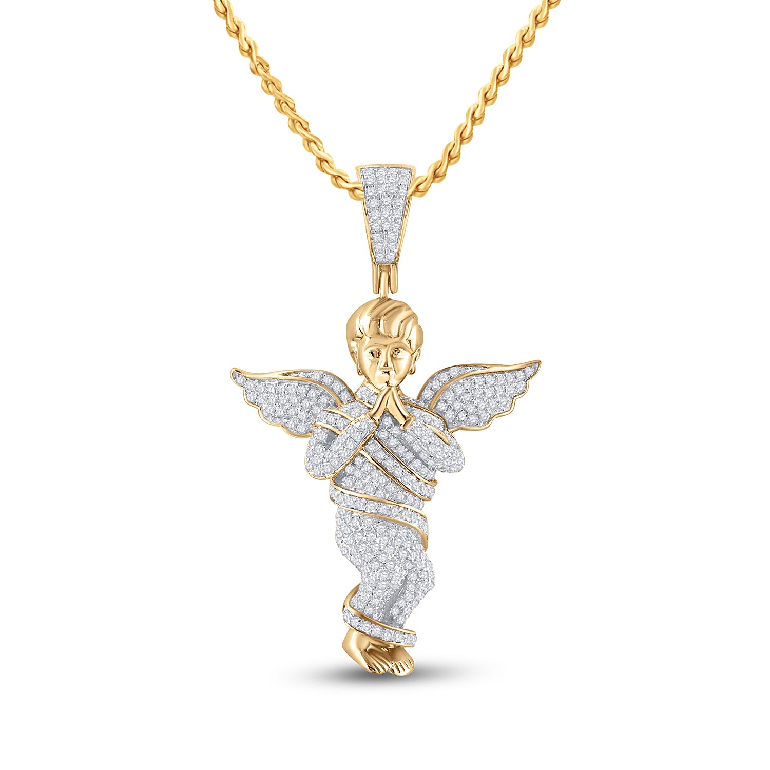 10kt Yellow Gold Mens Round Diamond Praying Angel Wings Charm Pendant 7/8 Cttw