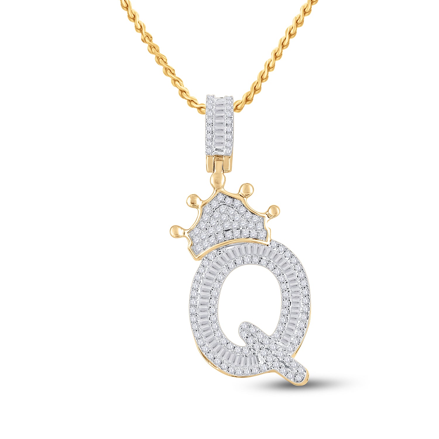 3/4CT-DIA P1P2 CROWN INITIAL "Q" MENS PENDANT