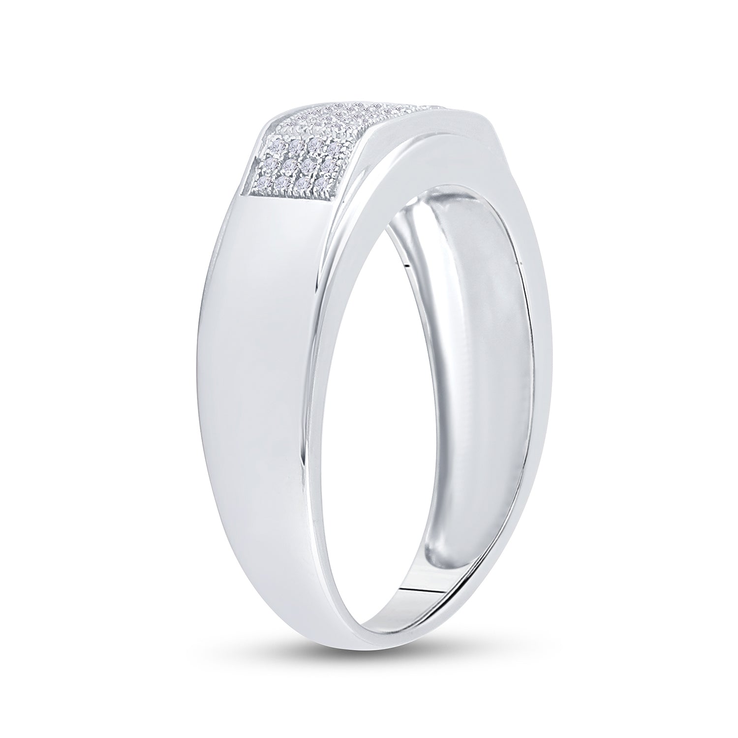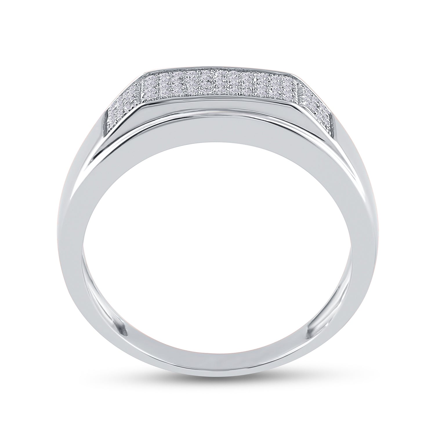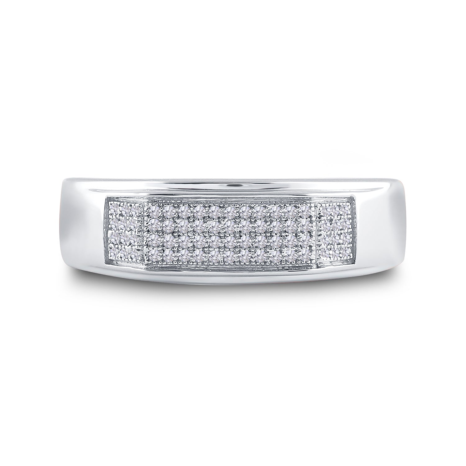 Sterling Silver Mens Round Diamond Micropave Flat Wedding Anniversary Band Ring 1/5 Cttw