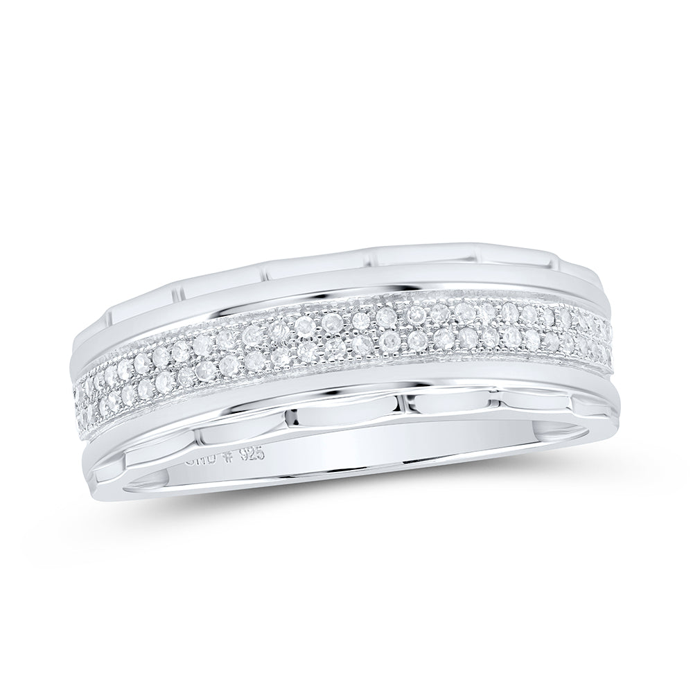 Sterling Silver Mens Round Diamond Wedding Band Ring 1/5 Cttw