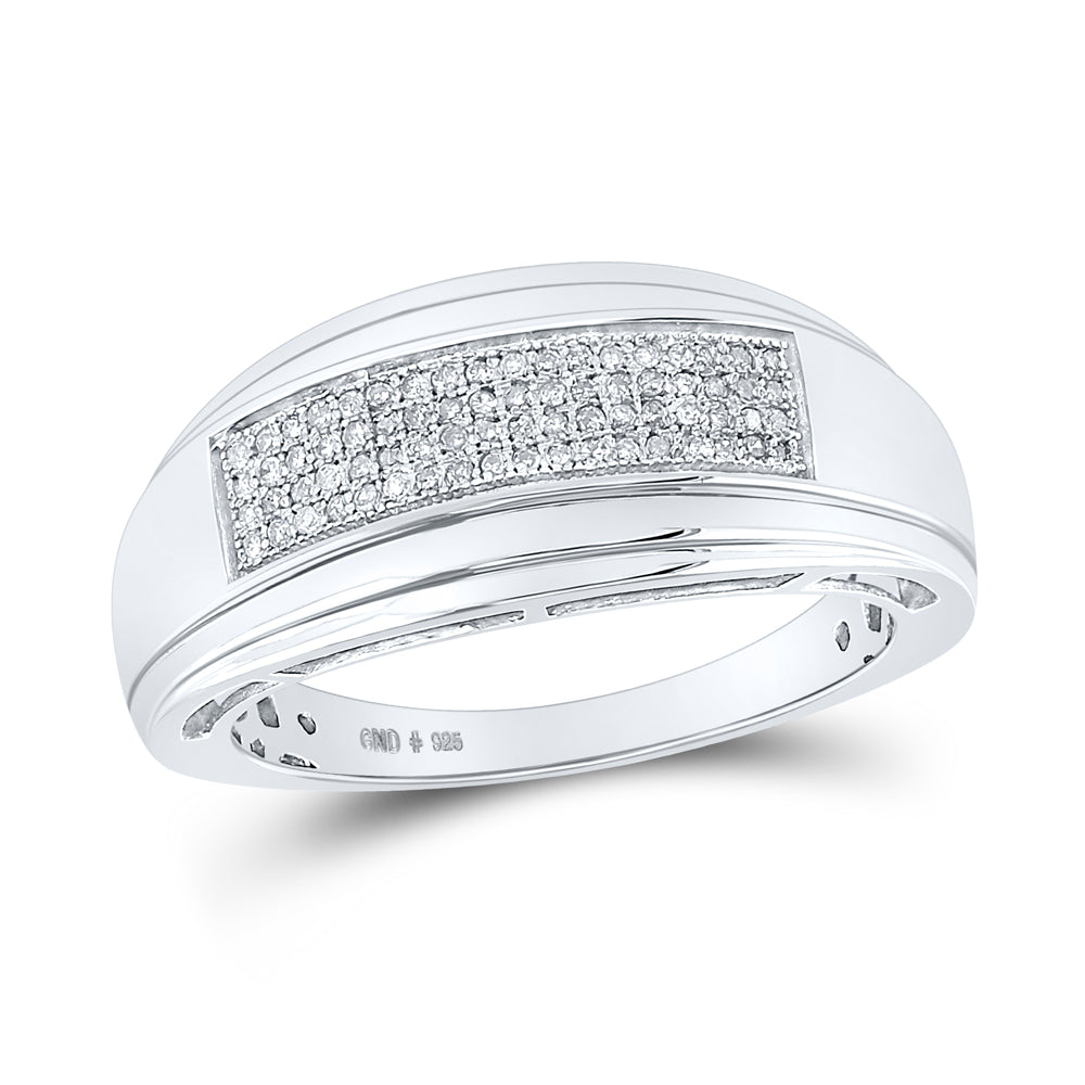 Sterling Silver Mens Round Diamond Wedding Pave Band Ring 1/5 Cttw